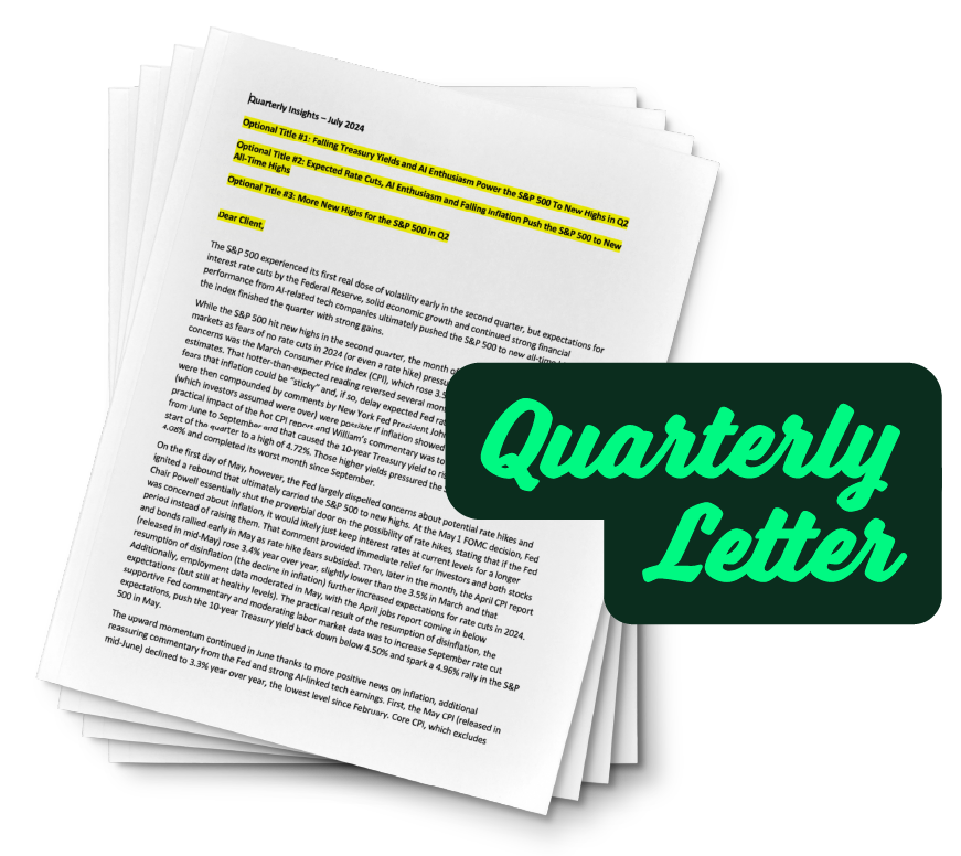 Leverage our Quarterly Letter to solidify your client relationships. Regular, meaningful communication fosters trust and loyalty, ensuring your clients feel supported through every market cycle.